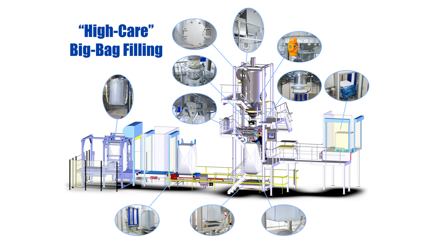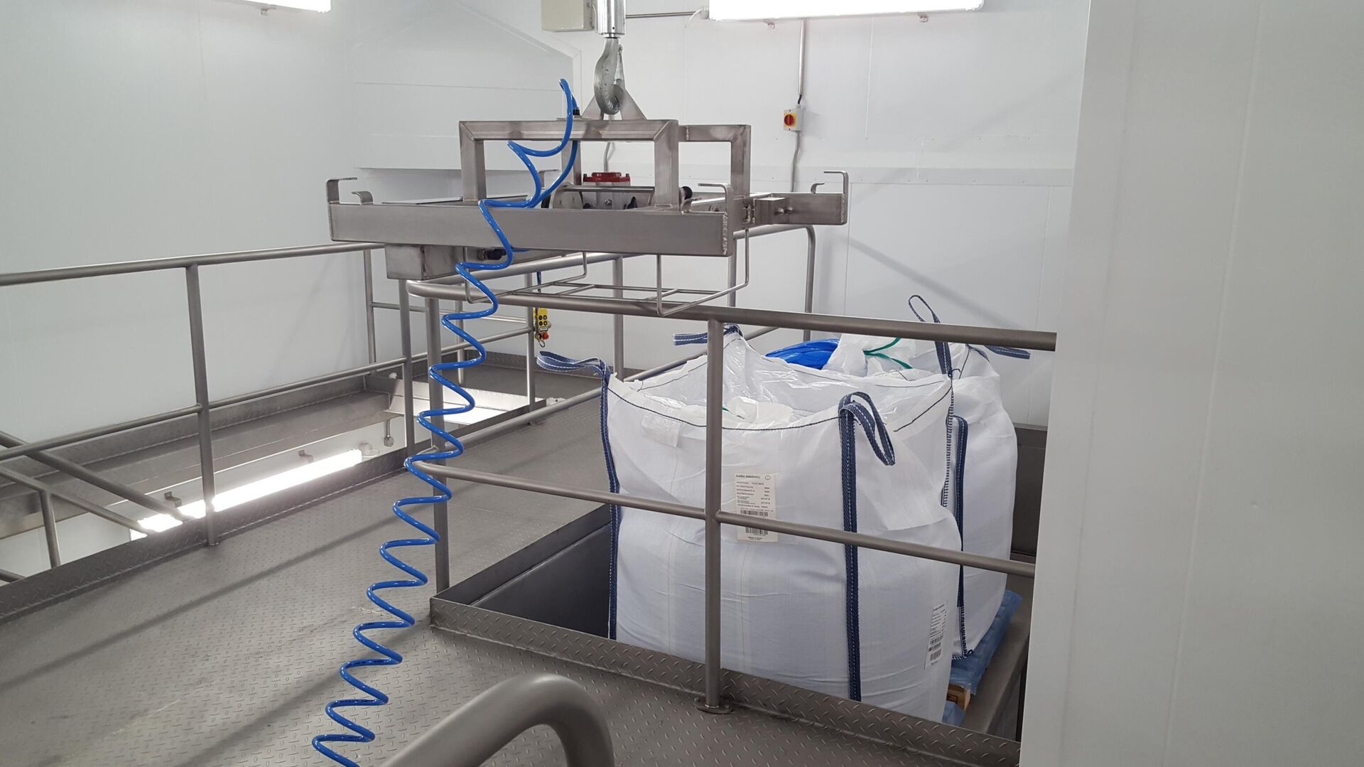 TBMA has the expertise and extensive experience with the engineering, installation and commissioning of sanitary big-bag installations, for example for the processing of baby milk powder. These big-bag or FIBC filling systems must work under strict hygienic conditions (clean room). Our hygienic big-bag filling lines guarantee a dust-proof, highly accurate and contamination-free transport of your product to well-filled, stable and straight, well-stackable big-bags.