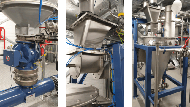 Maintenance has also been considered: a manually operated slide valve has been mounted under the silo, allowing periodic maintenance of the underlying system without emptying the silo.