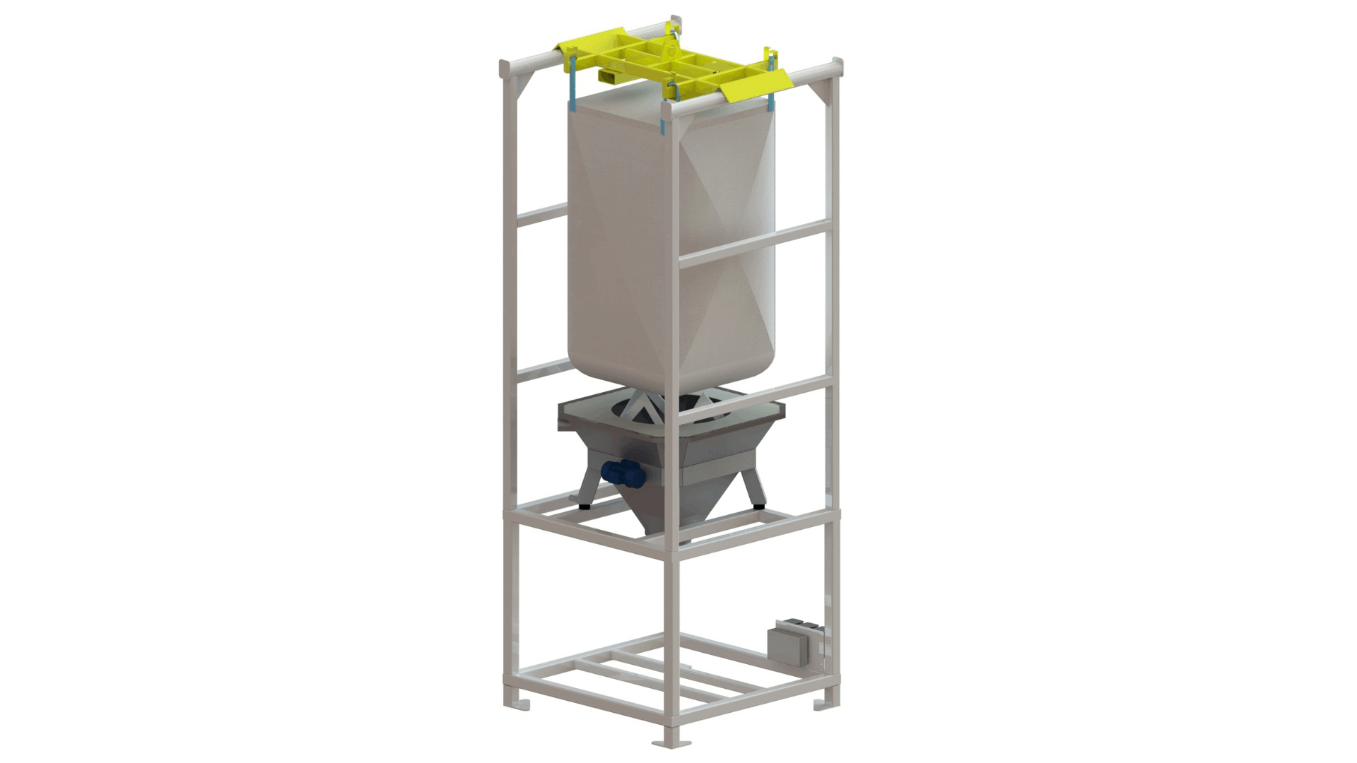 These big-bag discharging systems are suitable for processing single or multi-trip bags, with or without a plastic inner liner. Discharge takes place in, for example, a hopper, screw, rotary valve and/or pneumatic conveying system.