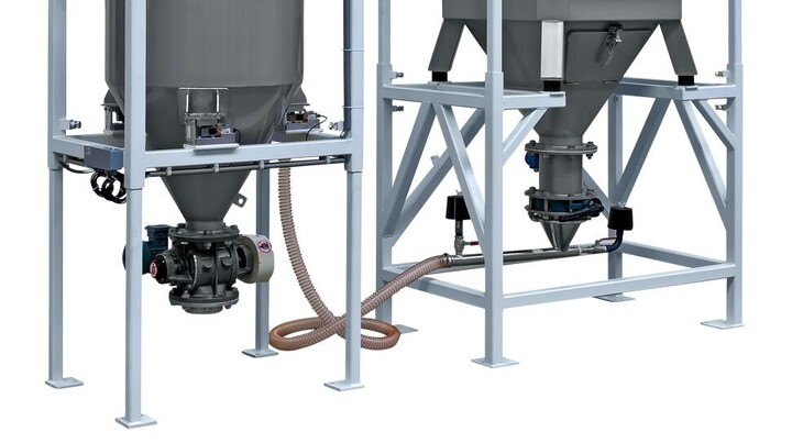 Conveying powders and granulates from one or more sources to a single receiving point can be done by vacuum conveying. When working with an underpressure there is no product leakage, making this system especially suitable for processing toxic and other harmful products. The suction is provided by a product fan or vacuum blower.