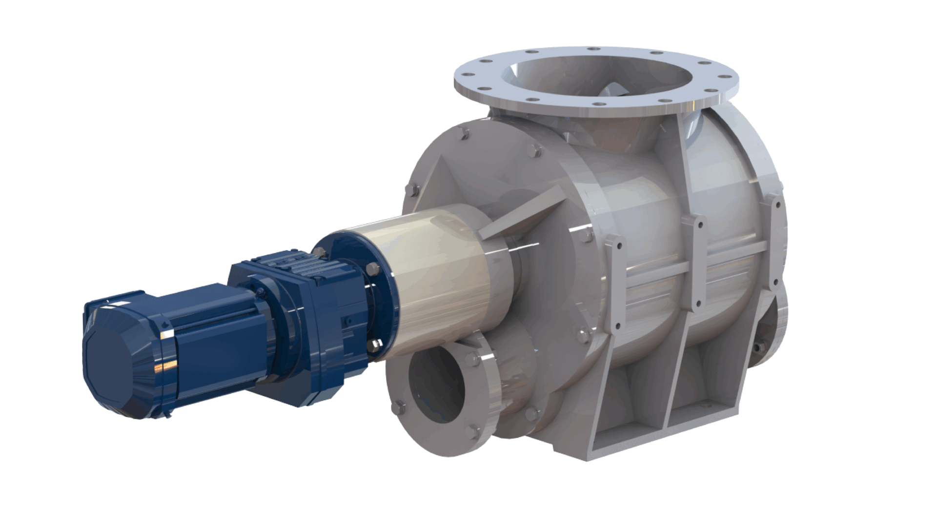 De H-GR sluizen zijn zowel aan de transportinlaat als aan de transportuitlaat voorzien van flenzen voor directe montage aan de pneumatische transportleidingen. De geïntegreerde doorblaasaansluitingen zijn aan de rotorvorm aangepast, waardoor de rotorpockets volledig worden leeggeblazen. De sluizen zijn tevens standaard voorzien van zij-ontluchtingen.