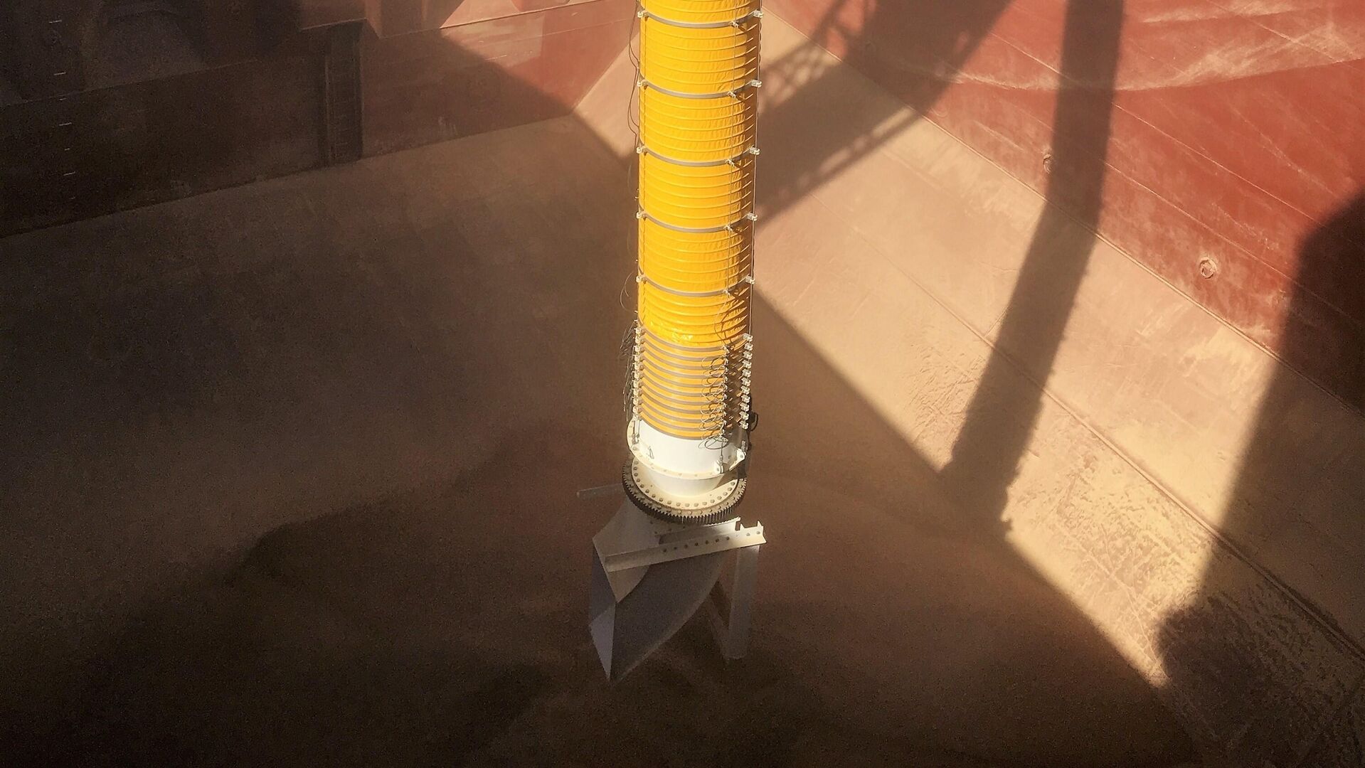 De nieuwste toevoeging aan het CIMBRIA-assortiment is de radiale trimmer. Deze roterende uitloop is verkrijgbaar met verschillende opties, afhankelijk van de toepassing en de eisen van de eindgebruiker. Het accessoire wordt op een draaikrans op de uitlaat van de beladingsbalg gemonteerd en is op afstand bedienbaar. Het apparaat, dat continu of met tussenpozen wordt gebruikt, verspreidt het product gelijkmatig in het scheepsruim. Zo wordt het ruim onderdeks maximaal gevuld met een minimum aan machinebewegingen.